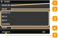顯示所選項目的目前狀態。下圖以 <影印/列印工作> 畫面為例說明。