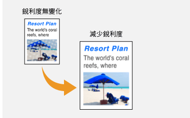 您可以調整影像的銳利度。增加銳利度可銳化模糊的文字和線條,降低銳利度可改善雜誌相片的外觀。