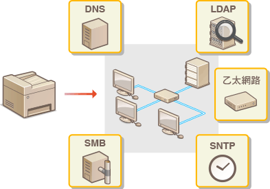網路組態視網路用途而異。本機設計相容於多種網路組態,且具備多種技術。請聯絡網路管理員,並根據網路環境設定組態。