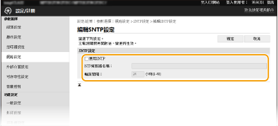 測試 NTP/SNTP 伺服器通訊您可以透過按一下 [SNTP設定] 中的 [設定/註冊]