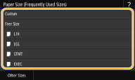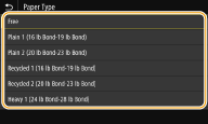 If the screen shown above is not displayed when paper is loadedIf you always load the same paper in the multi-purpose tray, you can skip the paper setting operations by registering the paper size and type as the default setting. When the default setting is registered, however, the screen shown above is not displayed. To display the screen, select <Specify When Loading Paper> (Registering Default Paper Settings for the Multi-Purpose Tray).