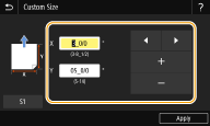 Select <X> or <Y>, and enter the length of each side using <+>/<->, with