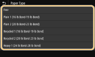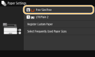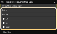 After the default paper setting is registered, the paper setting screen is not displayed when paper is loaded, and the same setting is always used. If you load a different paper size or type without changing the paper settings, the machine may not print properly. To avoid this problem, select <Specify When Loading Paper> in step 3, and then load the paper.