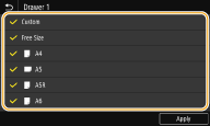 You can ensure that only frequently used paper sizes are shown in the screen for selecting the paper size setting.