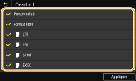 Vérifiez que seules les cases à cocher des formats de papier fréquemment utilisés sont cochées.