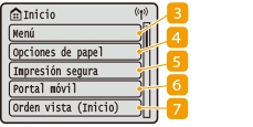 <Orden vista (Inicio)>Permite cambiar el orden en el que se muestran los botones de la pantalla Inicio. Personalización de la pantalla Inicio