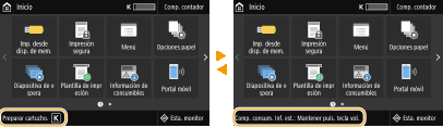 En la pantalla aparecen mensajes en determinadas situaciones como cuando se agota el papel o cuando el cartucho de tóner llega al final de su vida útil.