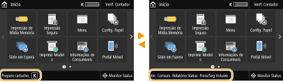 As mensagens são exibidas na tela em situações como quando o papel acaba ou quando a vida útil do cartucho de toner chega ao fim.