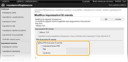 Per maggiori informazioni sulle operazioni di base da eseguire per configurare la macchina dalla IU remota, consultare Impostazione delle opzioni di menu dalla IU remota.