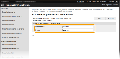 [Password] Immettere dei caratteri alfanumerici per la password della chiave privata impostata per il file da registrare.