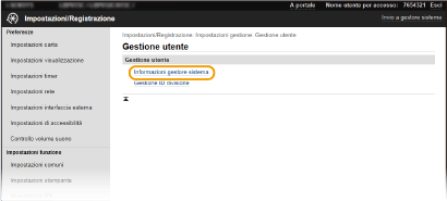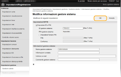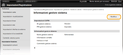 Alcune impostazioni possono essere modificate solo dopo aver effettuato l'accesso in modo Gestore sistema.