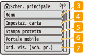 <Ord. vis. (Sch. pr.)>Consente di cambiare l'ordine di visualizzazione dei pulsanti nella schermata Scher. principale. Personalizzazione della Schermata princip.