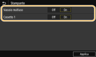 Per ogni alimentazione carta a cui si desidera applicare la funzione di selezione automatica dell'alimentazione carta, specificare <On>.