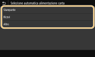 Selezionare <Selezione automatica alimentazione carta> / <Attiv./dis. sel. autom.cass.>.