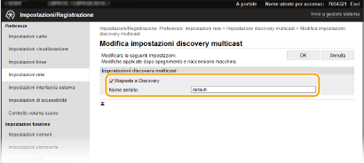 Selezionare la casella di controllo [Risposta a Discovery] e specificare le impostazioni richieste.