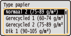 Op het Model zwart-wit LCD selecteert u vervolgens het papiertype.