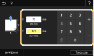 Selecteer <X> of <Y>, en voer de lengte van iedere zijde in met behulp van de numerieke toetsen.