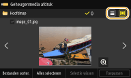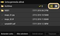 ![]() Wanneer u <Datum/tijd (oplopend)> of <Datum/tijd (aflopend)> selecteert, worden bestanden gesorteerd op basis van de datum en tijd van wijziging van de bestanden.