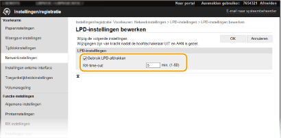 Schakel dit selectievakje in om af te drukken via RAW. Als u RAW niet gebruikt om af te drukken, schakelt u het selectievakje uit. [RX-time-out]