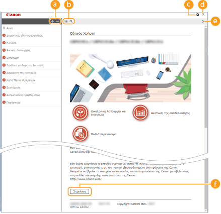 Κάντε κλικ για να εμφανιστούν πληροφορίες σχετικά με το πώς μπορείτε να προβάλλετε το εγχειρίδιο Οδηγός Χρήστη, να πραγματοποιείτε αναζήτηση και άλλες πληροφορίες.
