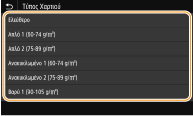 Αφού καταχωριστεί η προεπιλεγμένη ρύθμιση χαρτιού, η οθόνη ρύθμισης χαρτιού δεν εμφανίζεται όταν τοποθετείται το χαρτί, και χρησιμοποιείται πάντα η ίδια ρύθμιση. Εάν τοποθετήσετε διαφορετικό μέγεθος ή τύπο χαρτιού χωρίς να αλλάξετε τις ρυθμίσεις χαρτιού, η συσκευή ενδέχεται να μην εκτυπώνει σωστά. Για να αποφύγετε αυτό το πρόβλημα, επιλέξτε <Ορίστε το Χρόν Τοποθ Χαρτ> στο βήμα 3 και, στη συνέχεια, τοποθετήστε το χαρτί.