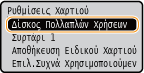![]() ![]() Αν καταχωρήσετε το μέγεθος του χαρτιού που χρησιμοποιείτε συχνά στα πλήκτρα <S1> έως <S3>, μπορείτε να τα εμφανίζετε με το πάτημα ενός πλήκτρου. Καταχώριση χαρτιού ειδικού μεγέθους