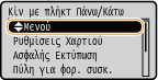 Το παρατεταμένο πάτημα της επιλογής <Μετακ αριστ> ή <Μετακ δεξ> μετακινεί συνεχώς το επιλεγμένο πλήκτρο.