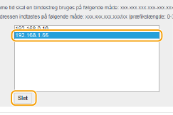 Vælg en IP-adresse, og klik på [Slet].