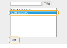 Indtast MAC-adressen i tekstfeltet [Adresse til registrering], og klik på [Tilføj].