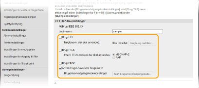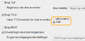 Marker afkrydsningsfeltet [Brug TTLS] eller [Brug PEAP].