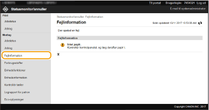 Uanset indstillingen for styring af afdelings-id'er vises alle dokumenter til udskrivning, der i øjeblikket udskrives eller venter på at blive udskrevet.