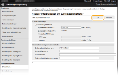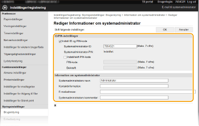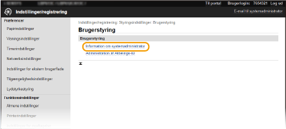 Nogle indstillinger kan kun ændres, når du er logget på i Systemadministratortilstand.