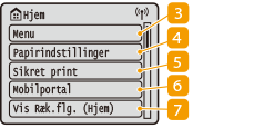 <Vis Ræk.flg. (Hjem)>Gør det muligt at ændre den rækkefølge, som Hjem-skærmknapperne vises i. Tilpasning af Hjem-skærmen