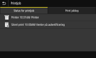 Viser den aktuelle status for det valgte element. Skærmen <Printjob> er vist herunder som et eksempel.