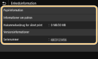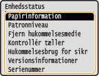 Viser maskinens status, f.eks. mængden af papir eller den resterende mængde toner i tonerpatronerne.