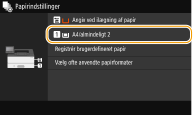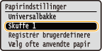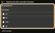 ![]() ![]() Hvis du registrerer de ofte anvendte papirformater på knapperne <S1> til <S3>, kan du aktivere dem med ét enkelt tryk. Registrering af brugerdefineret papirformat