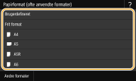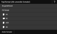 ![]() ![]() Hvis du registrerer de ofte anvendte papirformater på knapperne <S1> til <S3>, kan du aktivere dem med ét enkelt tryk. Registrering af brugerdefineret papirformat