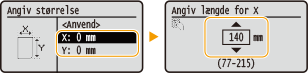 Vælg <X> eller <Y>, og indtast længden af hver side ved hjælp af taltasterne.