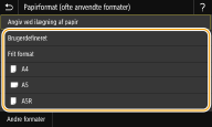 ![]() ![]() Hvis du registrerer de ofte anvendte papirformater på knapperne <S1> til <S3>, kan du aktivere dem med ét enkelt tryk. Registrering af brugerdefineret papirformat