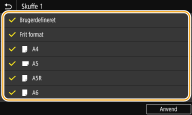 Fjern afkrydsningsfelterne for de papirformater, du ikke vil have vist.