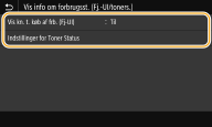 Hvis du ikke vil bruge Toner Status, skal du vælge <Fra>. Hvis du vil forhindre, at der vises en knap, som giver adgang til websteder, hvor man kan købe tonerpatroner, i Toner Status, skal du vælge <Til> og derefter <Fra>.