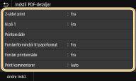 ![]() Med en PDF-fil kan du udskrive 9 eller 16 sider med billeddata på en side af et ark papir ved at bruge <N på 1> under <Indstil PDF-detaljer>.