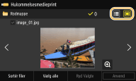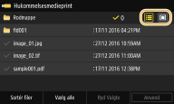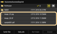 Hvis der er forskellige filtyper, skal du vælge <JPEG/TIFF Filer> eller <PDF-Filer>.