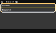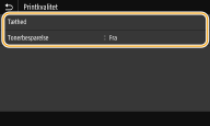 Hvis du vælger <Til>, udskrives der med tonerbesparelsesfunktion. Vælg <Til>, hvis du ønsker at kontrollere layoutet eller andre karakteristika, før du fortsætter til den endelige udskrivning af et stort job. ![]() Når <Tonerbesparelse> er angivet til <Til>, er <Tæthed> ikke tilgængelig.