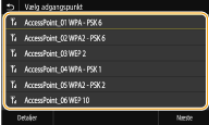 Vælg en trådløs LAN-router, og vælg <Detaljer>. Vælg