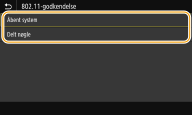 Når du opretter forbindelse til et trådløst LAN, opstår der en godkendelsesfejl i maskinen, hvis godkendelsen af den delte nøgle er angivet på den trådløse router. Hvis dette sker, ændrer maskinen automatisk indstillingen til <Delt nøgle> og forsøger at oprette forbindelse igen.