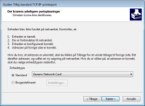 ![]() * Hvis du vælger [Enhedstype], skal du vælge [Canon Network Printing Device with P9100] under [Standard].