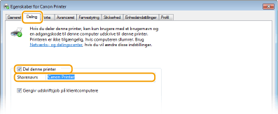 Sådan udføres administration af afdelings-id ved hjælp af en printserver"Canon Driver Information Assist Service" skal tilføjes under installeringen af printerdriveren. For more information henvises til manualerne for de relevante drivere på hjemmesiden med online-manualer.