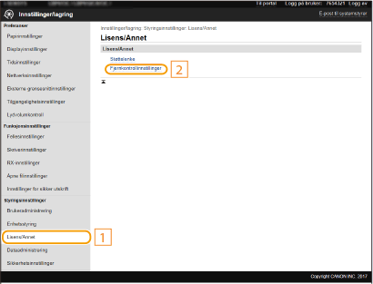 Hvis du vil ha mer informasjon om grunnleggende handlinger som skal utføres ved oppsett av maskinen fra Fjernkontroll, kan du se Konfigurere menyalternativer fra Fjernkontroll.