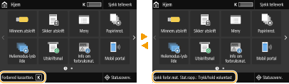 Meldinger vises øverst på skjermen i situasjoner som når det er tomt for papir eller tonerkassetten nærmer seg slutten av levetiden.